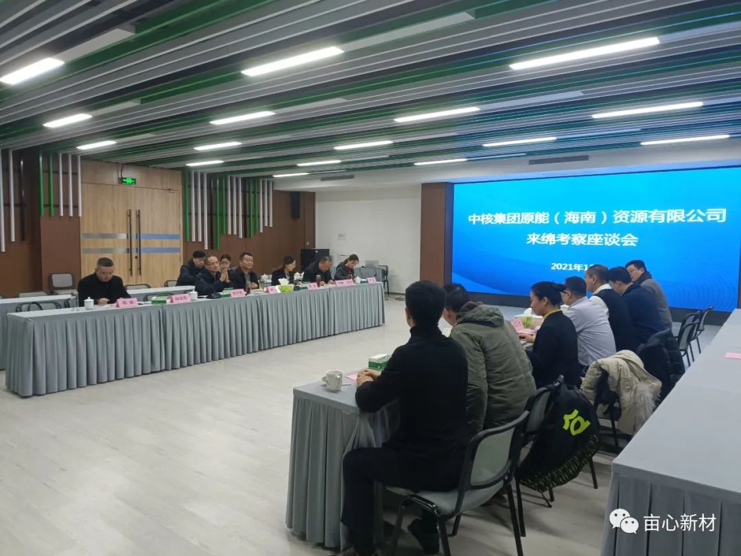 2021年12月22日至23日,中核集團原能(海南)資源有限公司副總經(jīng)理付夢來帶隊來綿考察調研畝心新材。